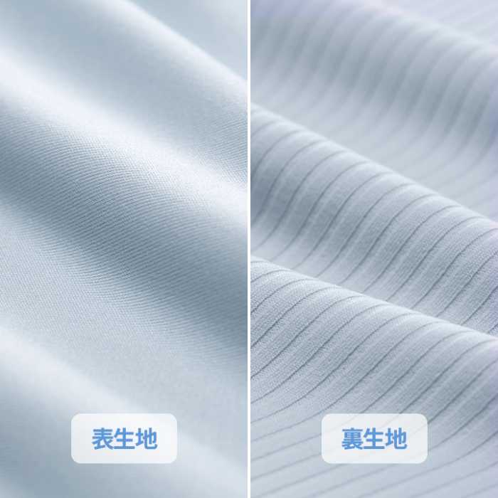 裏生地は、ひんやり×さらっとした肌触りが特徴的。汗ばむ時期でもさらっと快適に過ごせます。吸湿性・通気性に優れているセンシル®素材を採用している点もポイント。