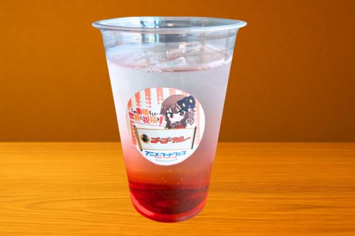 注目のドリンクは、「めぐみんのエクスプロージョンジュース」。爆裂魔法をイメージしたピリッと刺激的な酸味と、しゅわしゅわ弾ける炭酸のコンビネーションがクセになる爽快な味わい♡