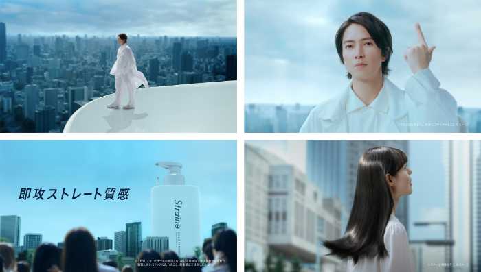 その瞬間、女性たちの髪がふんわりと風に揺れ、サラサラのストレートヘアに大変身。最後は「ストレイン!」という決め台詞とともに、魔法のように美髪を届けます。