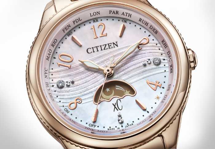 ケースとバンドには、肌を明るく見せるシチズンだけの特別な色“サクラピンク®”を採用。軽量かつ傷に強いスーパーチタニウム™素材で、着け心地も快適。