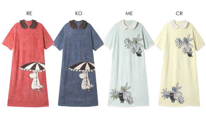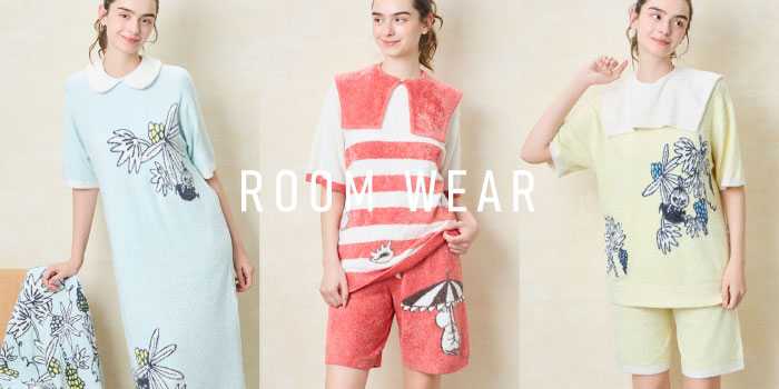 ルームウェアには、ムーミンが貝殻を集めているキュートな柄をあしらい、ほっと一息つきたい時間にぴったりな柔らか素材のワンピースやセットアップが登場しています。