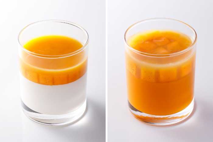 厳選されたマンゴーにパッションフルーツ入りの葛が絡み、まるで宝石のようなツヤ感を演出。