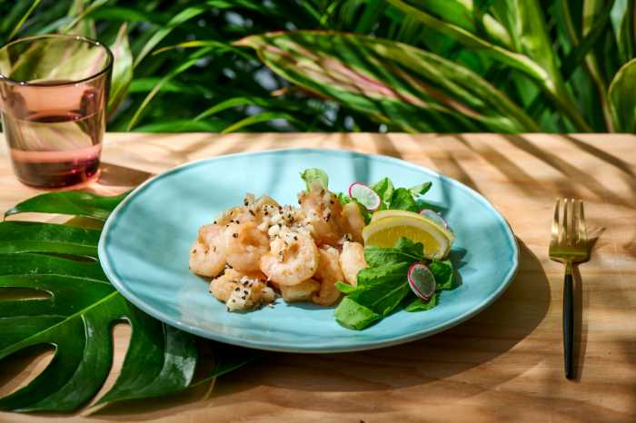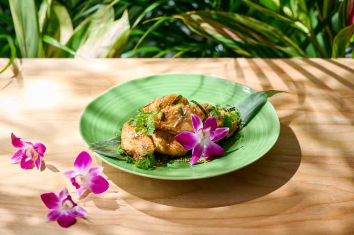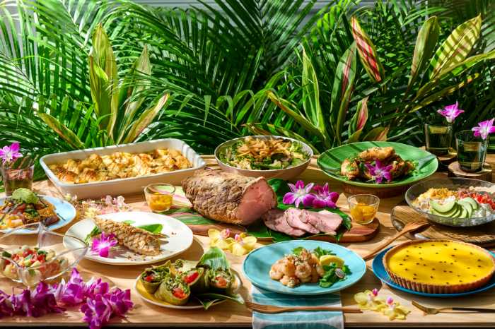 ノースショア風ガーリックシュリンプやローストポーク マンゴーサルサソースなど、陽気な島の風を感じられるラインナップが勢ぞろい。