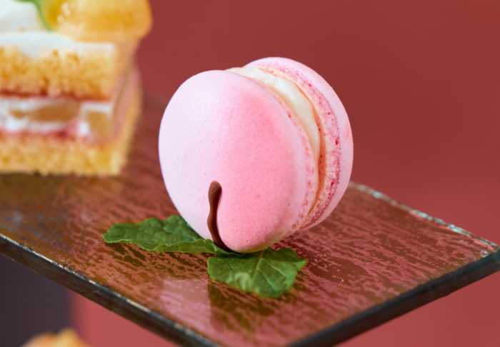 桃に見立てた愛らしいマカロンがフォトジェニック。