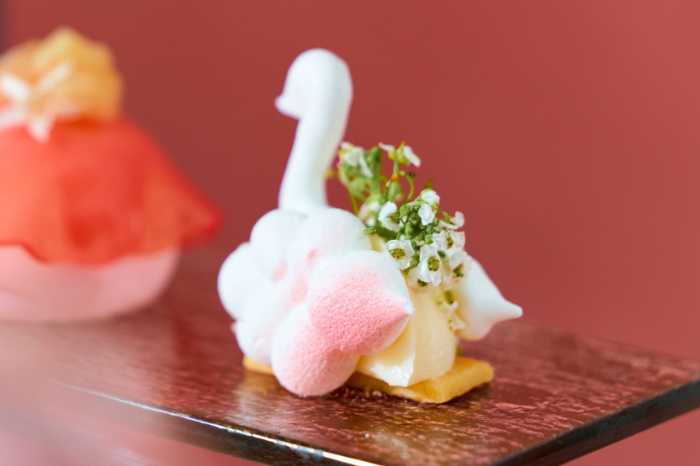 ホワイトチョコムースとメレンゲで仕上げた優雅な1品。