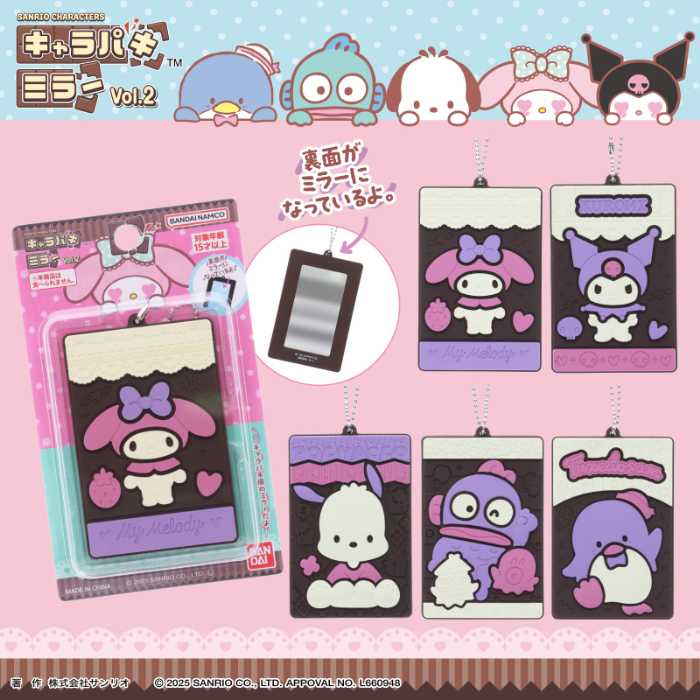 人気の「サンリオキャラクターズ キャラパキチョコレート」が、まさかの“そっくりミラー”に♡半立体ラバーで仕上げたリアルなチョコ質感が魅力の『キャラパキミラーVol.2』が、2025年6月下旬より全国で順次発売スタート!クロミ、マイメロディ、ポチャッコ、ハンギョドン、タキシードサムの全5種は、バッグに付けても可愛すぎるラインナップです。日常にちょこっと甘さを添える、新しい推し活アイテムが誕生♪