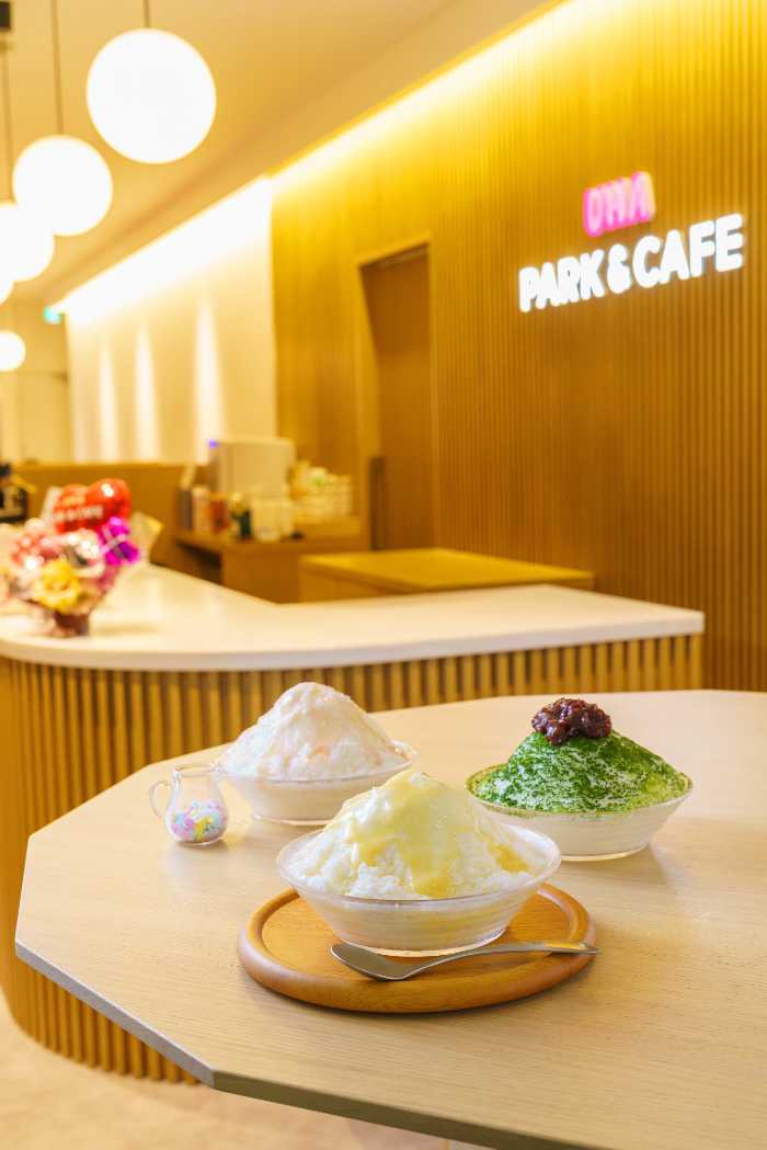 「特濃ミルクかき氷」は、大阪・UHA味覚糖本社の2階にある「UHA PARK&CAFE」でのイートイン限定販売。