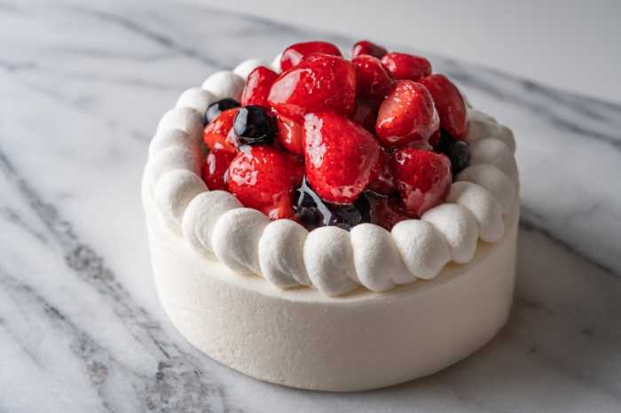 見た目も華やかな「ミガキイチゴとベリーのケーキ」は、ラズベリーやブルーベリーなど、数種のベリーを贅沢にトッピング。