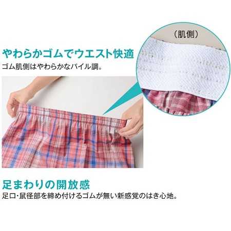 涼しさ、開放感、可愛さ、そして肌へのやさしさ。『まるでルームパンツみたい 1枚ではける快適トランクス』は、今までのインナーの常識を覆す1枚です。