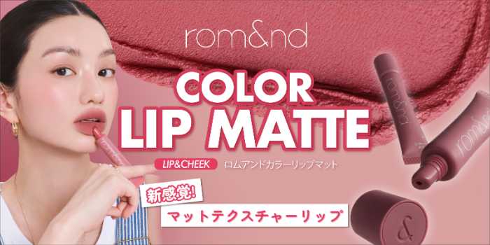 韓国コスメブランド「ロムアンド」から、新感覚のマットリップが登場!その名も「カラーリップマット」は、唇の縦ジワをカバーするプライマー機能と、ふんわり軽やかに色づくマットリップのいいとこ取り。1本でナチュラルメイクはもちろん、手持ちのリップのベースやチークとしても活躍してくれる万能アイテムです。リップメイクの幅がグンと広がる、話題の一本をいち早くチェックして♡