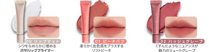 唇の下地としても、リップ単体でも、さらにはチークとしても使える「カラーリップマット」は、まさに新時代のマットリップ。