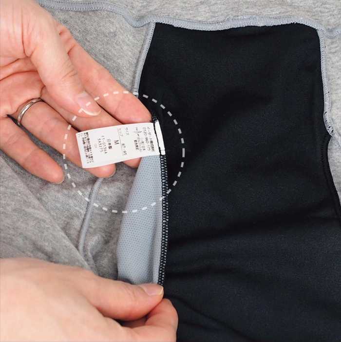 グラモアのサニタリーショーツは、洗濯タグを直接肌に当てないよう、内側ポケットに縫い付け。