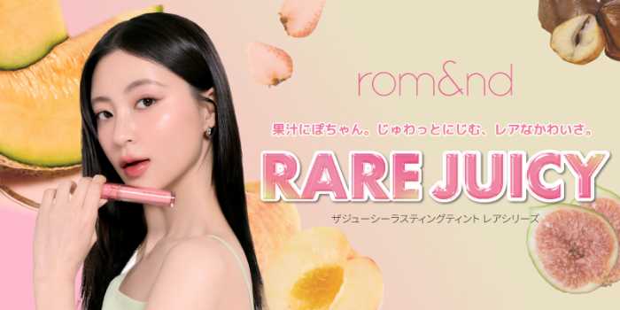 韓国発の人気コスメブランドrom&nd(ロムアンド)の定番リップ「ザジューシーラスティングティント」に、待望の新色が仲間入り♡2025年7月19日(土)より、全国のバラエティショップやアインズ&トルペなどで数量限定発売されます。今回は“レアフルーツ”から着想を得た、ジューシーで透明感あふれる5色が登場。果実のようにみずみずしい唇を叶える、今夏注目のアイテムです♪