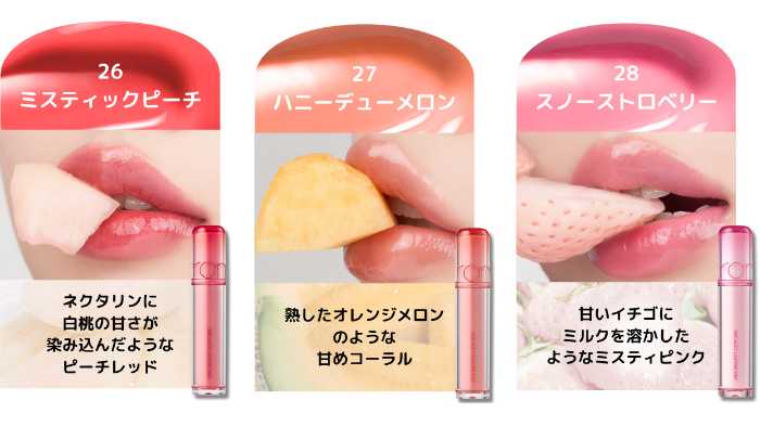 rom&nd新色はレアフルーツ着想♡透明ツヤリップが話題沸騰