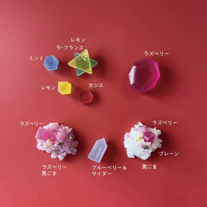 メインとなるルビーのラズベリー味に加え、カラフルな鉱物風の琥珀糖も詰め合わせに。