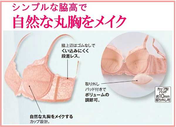 初心者にもおすすめな程よい脇高設計で、きれいな丸胸を演出。パッド付きで左右差も調整可。