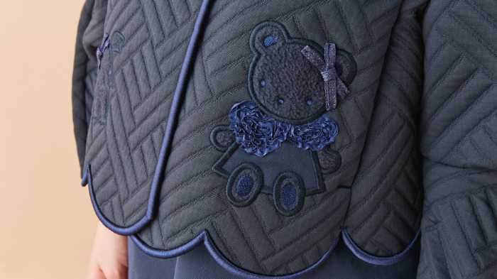 袖のタックで立体感を演出し、ママのもくもくキルトチェックコート(84,700円・税込)とリンクしたデザイン。