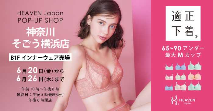 「自分にぴったりの下着を知っていますか?」HEAVEN Japanが提案する“適正下着®”は、心と体に寄り添う下着選びをサポートしてくれる新しい選択肢。そんなHEAVEN Japanが、2025年6月20日(金)〜26日(木)まで、そごう横浜店でポップアップショップを開催!話題の人気ブラを実際に試着しながら、プロのアドバイスが受けられるこのチャンス、自分の身体と向き合う時間にしてみませんか?