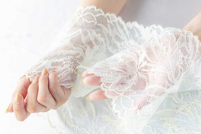 肌あたりもやわらかく、チクチクしにくいため、肌へのやさしさも魅力です。時代を超えて受け継がれる普遍的な美しさが「レースの女王」と呼ばれるゆえんです。