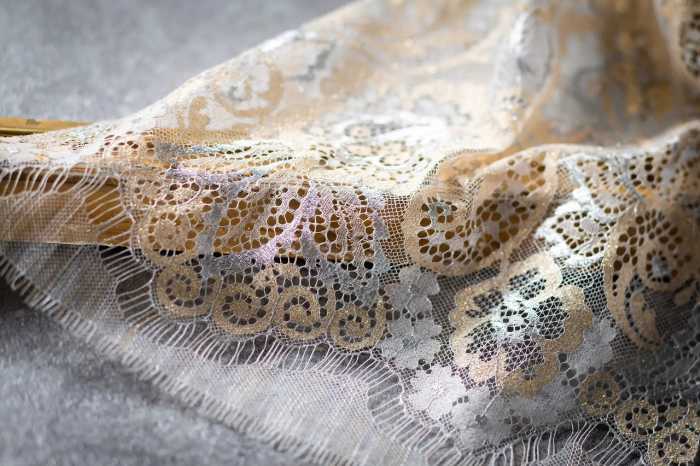 世界に約200台しかない希少な「リバー機」で織り上げられるため、大量生産ができず、たいへん貴重です。熟練の職人が手間ひまをかけて仕上げるレースは、まるでアートのように立体的で繊細。