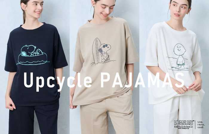 中でも注目は、少量ずつ余ったアウター用テキスタイルをアップサイクルした「やわらか天竺パジャマ」。