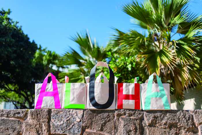 特に目を引くのは、ハワイ在住の日本人デザイナーによる「アイロハ デザイン」のALOHAロゴバッグ(スモール 22,000円/ラージ 32,450円)。一周でALOHAが完成する遊び心あふれるデザインが大人気です。