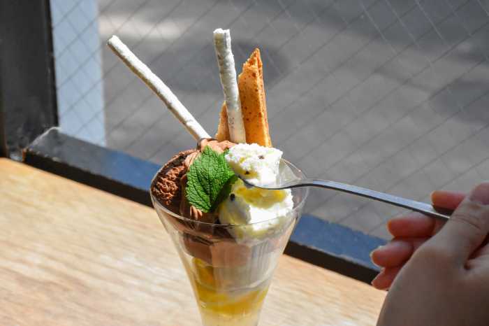 トップには、ビターで上質な「HIGH CACAO」アイスと、ハイチ産のカカオを使用したまろやかなホワイトチョコレートアイスが添えられ、真夏でも重くならない仕上がりに。