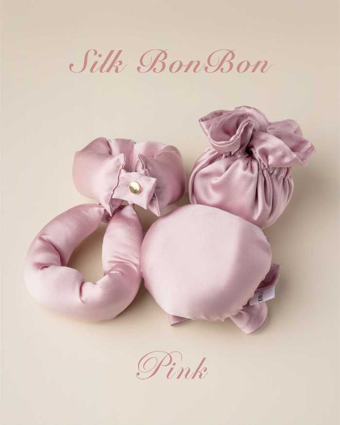 新発売の「シルクベーシック」と「シルクボンボン」は、どちらも贅沢なシルク100%素材。摩擦や乾燥から髪を守るだけでなく、肌に触れる部分もやさしく、着けている時間がそのまま“ケアタイム”に変わります。