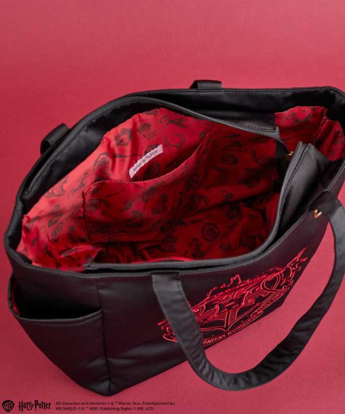 ブラックベースに繊細な刺繍を施したデザインで、裏地には寮ごとの象徴アイコンを描いた総柄プリントを使用。魔法界の物語に思わず引き込まれるような、遊び心あふれる仕掛けが魅力です♡