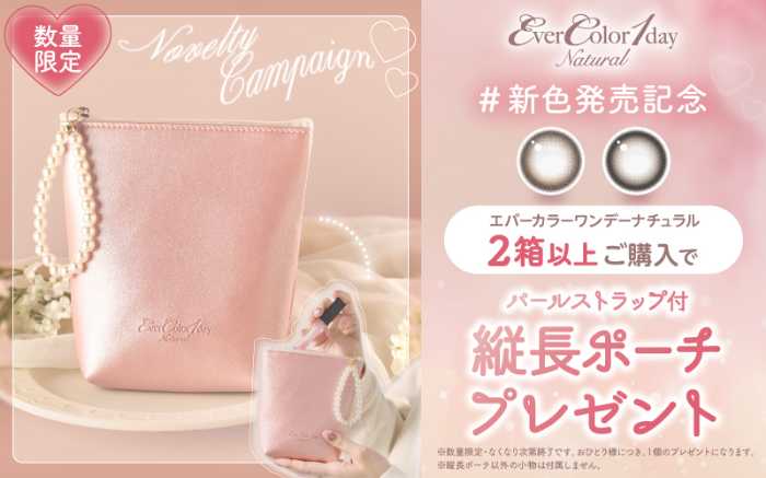 ひとつ目は、対象店舗で2箱以上購入すると先着で「パールストラップ付縦長ポーチ」がもらえるノベルティキャンペーン。可愛いだけでなく実用的なポーチは、ポーチフェチさん必見のアイテム♡