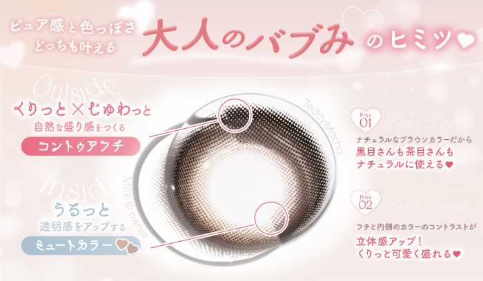 「ミルクブラウニー」「テディモカ」どちらのカラーも、瞳に溶け込むような自然なブラウンベースで、黒目でも茶目でも浮かずに使える万能カラー♡
