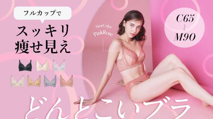 バストの大きさや下垂など、誰にも言えない悩みをそっと受け止めてくれる「どんとこいブラ」。新色ピンクローズは、肌に自然になじみながら気分をそっと華やがせてくれる優しいカラーです。