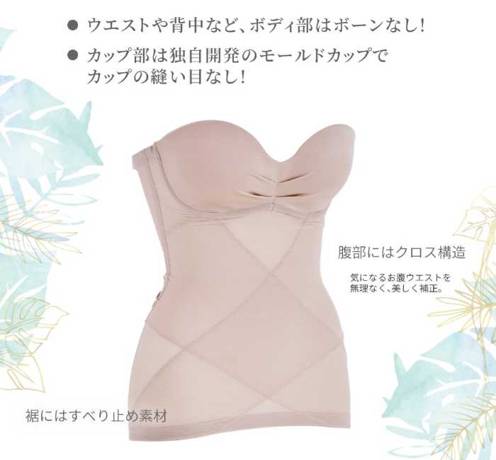 フックもボーンも使わず、下から履くだけで着脱できるのもポイント。パワーネットを二重に配置することで、快適さをキープしながらもウエスト・下腹部をしっかり引き締め。