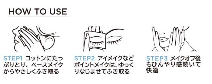 RO水のナノ浸透力が、メイク汚れを浮かせてサッとふき取ります。