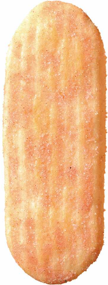 甘じょっぱい“ハッピーパウダー”に、明太子とチーズの旨みが合わさり、さらにもちの風味が加わった「ハッピーターン 明太もちチーズもんじゃ風味」。