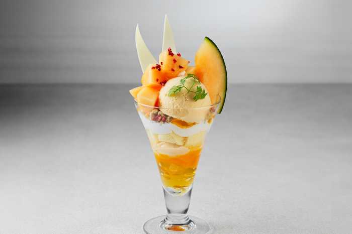 2025年7月1日から8月31日までの期間限定で登場する「北海道産赤肉メロンパフェ」は、夏の味覚を存分に楽しめる華やかな一品。