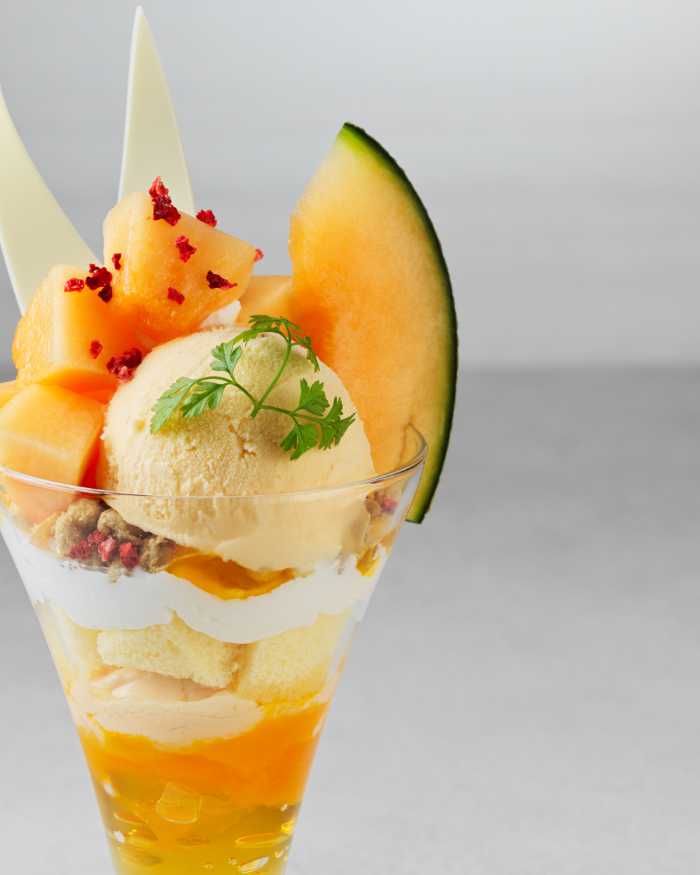 中にはグラノーラやメロンミルクプリン、生クリームが重なり合い、食べ進めるたびに異なる食感と風味に出会えます。