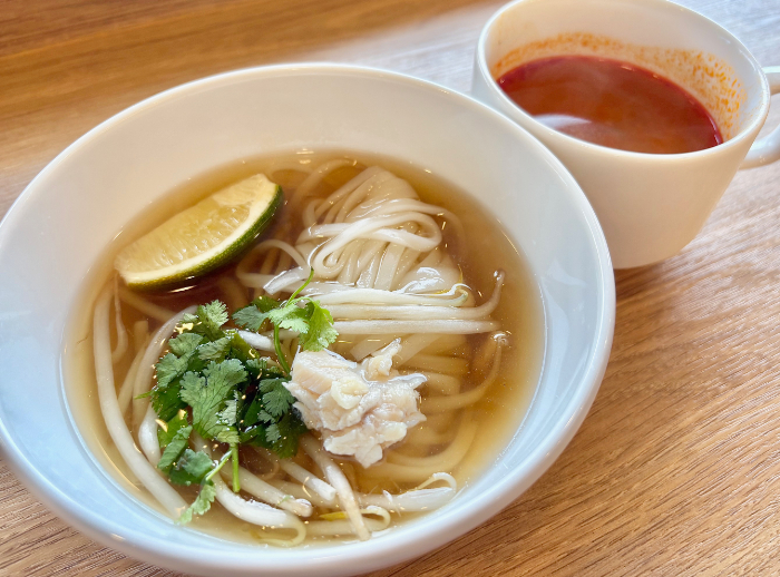 米粉麺を自分で茹でて仕上げるフォーと、本格的なトムヤムスープも♪