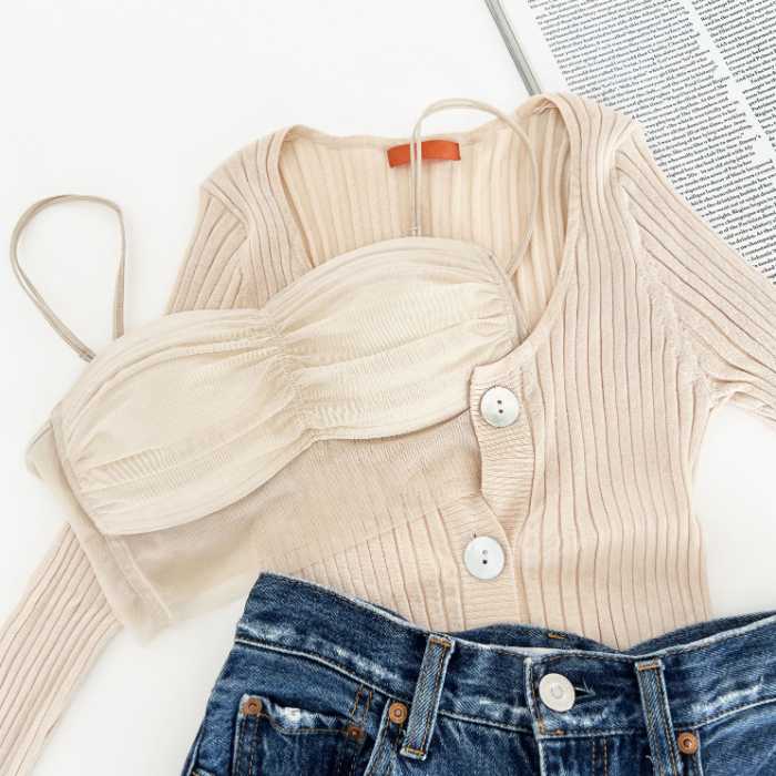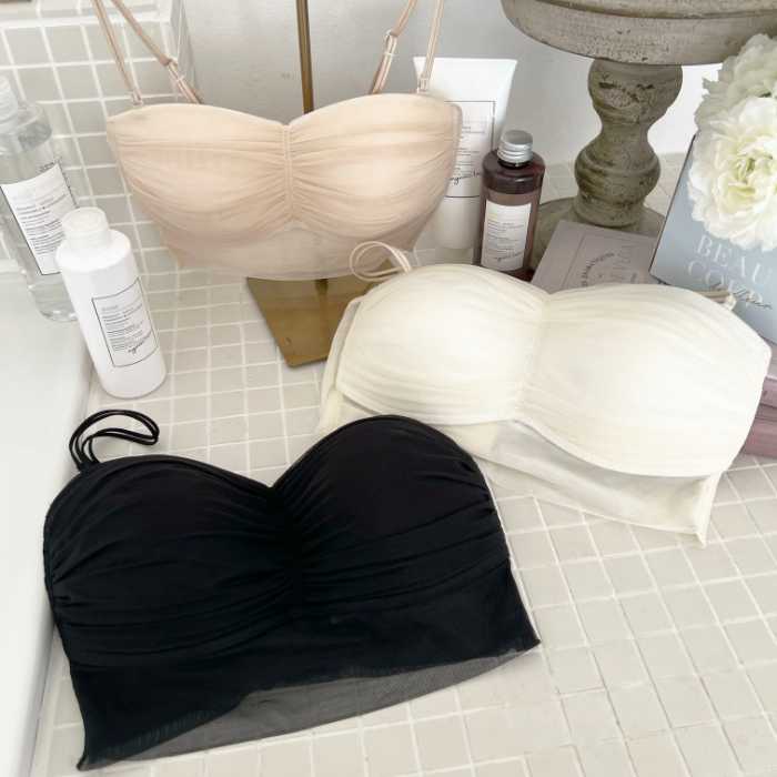 この夏登場したのが、ふんわりチュール素材のチューブトップブラ。ベージュ、アイボリー、ブラックの3色展開で、甘さ控えめなガーリーテイストからクールなジャケットスタイルまで幅広く活躍します。