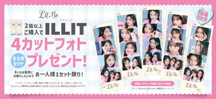 ブランドデビューを記念して、2025年7月1日(火)から、対象商品を2箱以上購入すると、ILLITメンバーの4カットフォト(全5枚セット)をプレゼント!