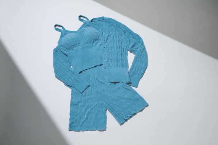 「nainen3点セット」は、パッド付きでそのまま着られるハーフトップブラ、涼しさとお腹まわりのあたたかさを両立したハーフフレアパンツ、冷房対策にぴったりのVネックカーディガンの3アイテム。