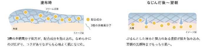 さらに「オールデイシールド」塗膜技術で、一日中うるおいが続き、化粧ノリも◎。