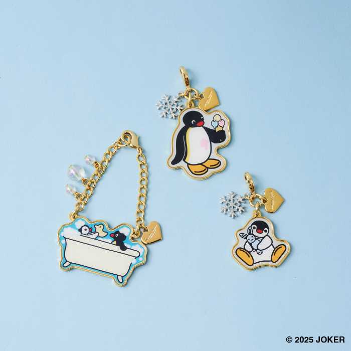 さらにバッグチャームとファスナーチャームは、泡や雪の結晶をモチーフにしたビジュー付きで、コーデのアクセントにぴったり。