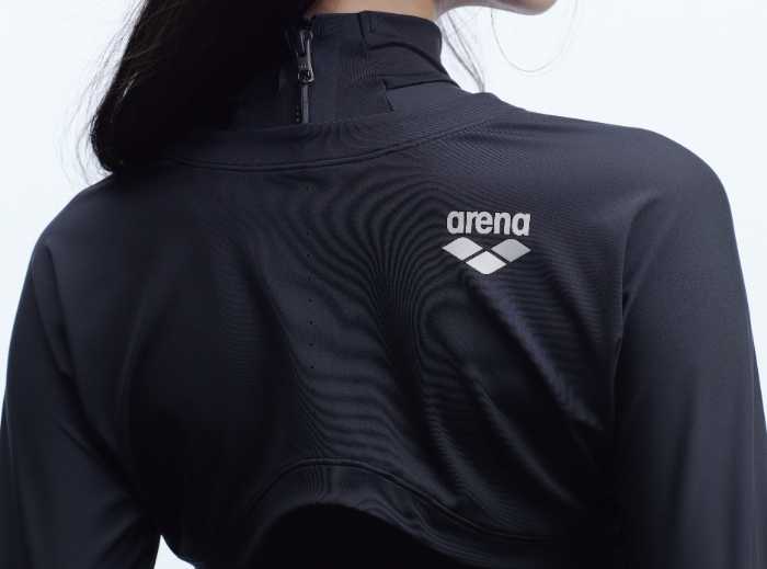 アリーナのボレロ型ラッシュガードは、手の甲から指先までをしっかりカバーする独自形状の袖が特長。