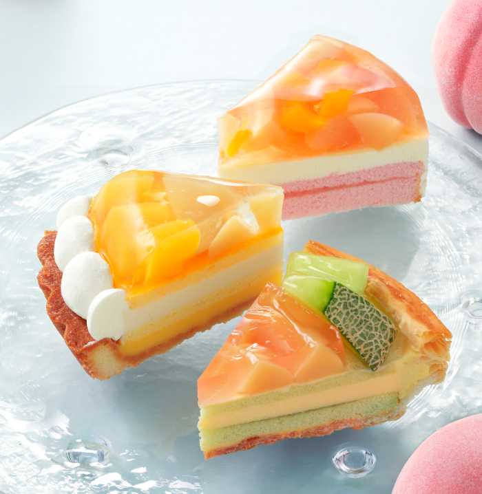 「白桃と黄桃のケーキ」「白桃とマンゴーのタルト」は9月11日(木)頃まで、「白桃とメロンのパイ」は8月14日(木)頃までの期間限定販売です。