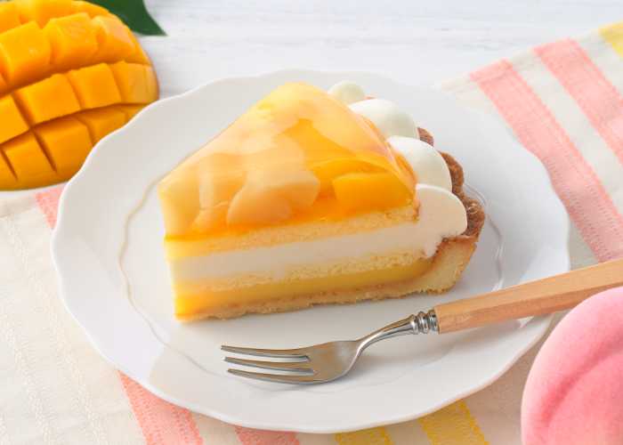 次に「白桃とマンゴーのタルト」は、マンゴーカスタードと白桃ムースがとろけるような口あたりで、トロピカルな味わいが魅力。