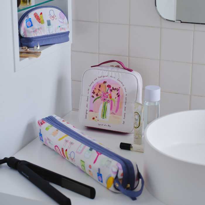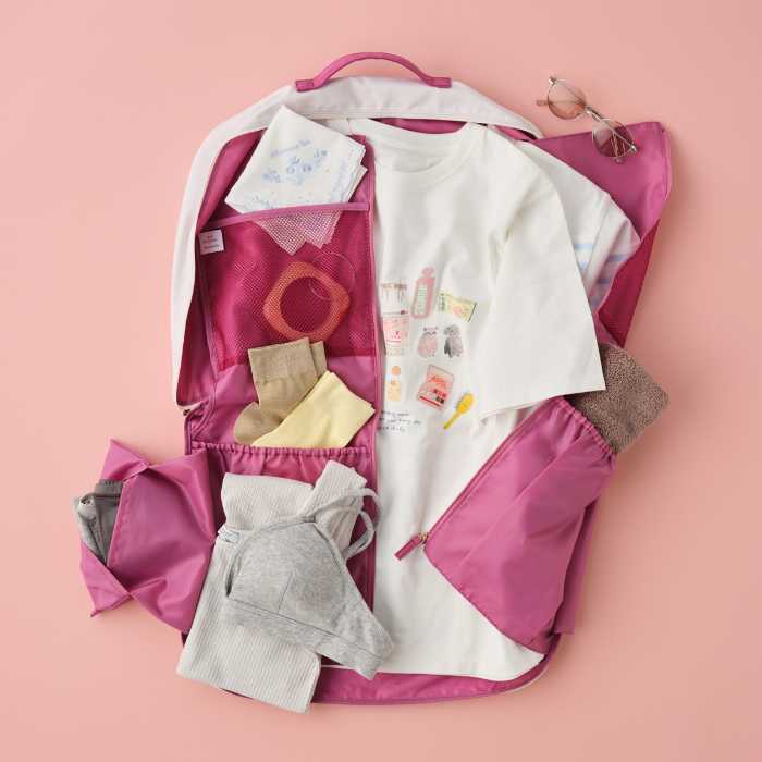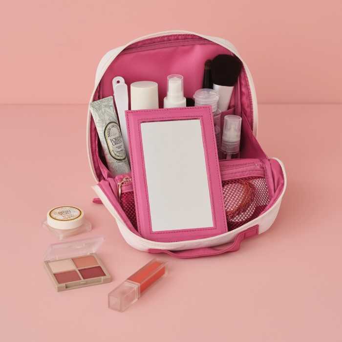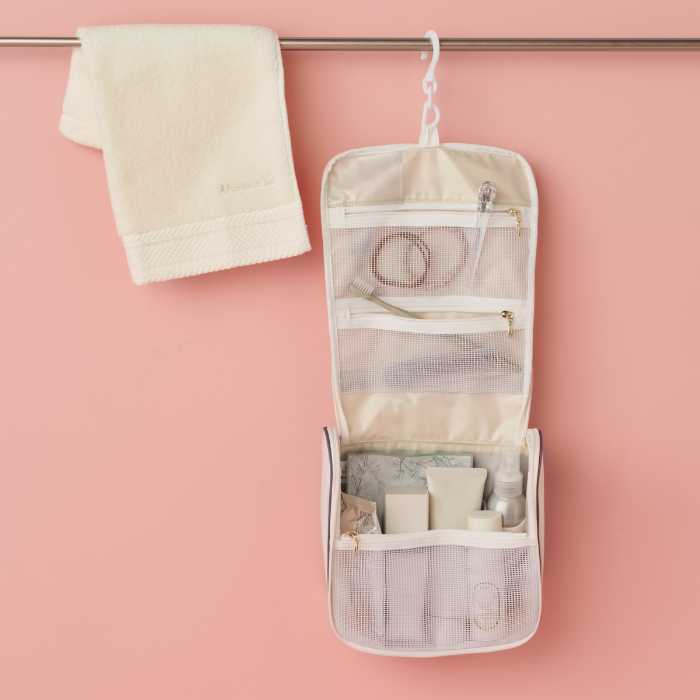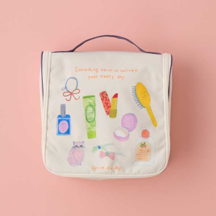 吊るして使えるハンギングポーチや、ミラー付きでどこでもメイクができる“そのままメイクポーチ”など、旅先でも自分らしく過ごせる工夫が光ります♡