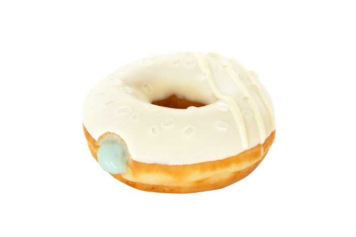 ホワイトチョコで包まれたリングドーナツに、すっきりとした清涼感のあるクリームをたっぷり詰め込みました。