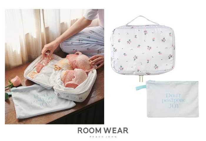 旅行時のランジェリー整理にぴったりのセット。ブラが約3枚入る収納力に、ポケットや巾着機能も◎。洗濯ネットはファスナー保護付きで使いやすさ抜群!