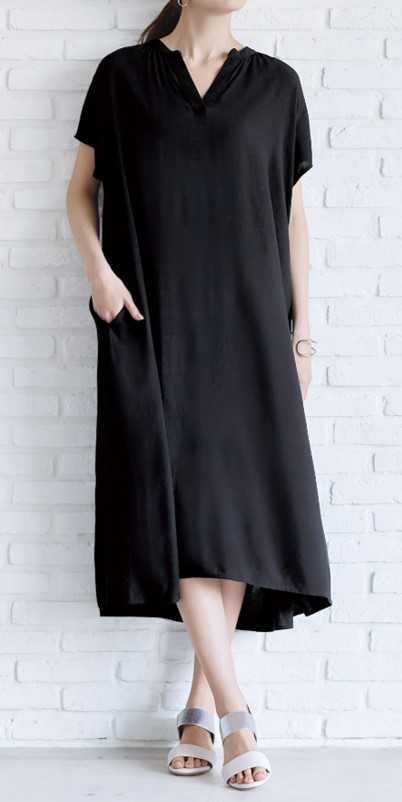 「接触冷感レーヨンワンピース」は、涼やかな着心地と計算されたIラインで、夏の主役にしたくなる1枚。